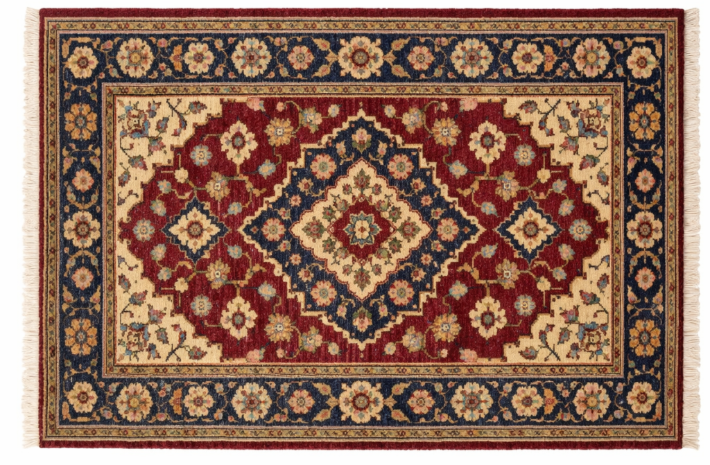 Design: Classic hand-knotted floral medallion design with traditional border detailing