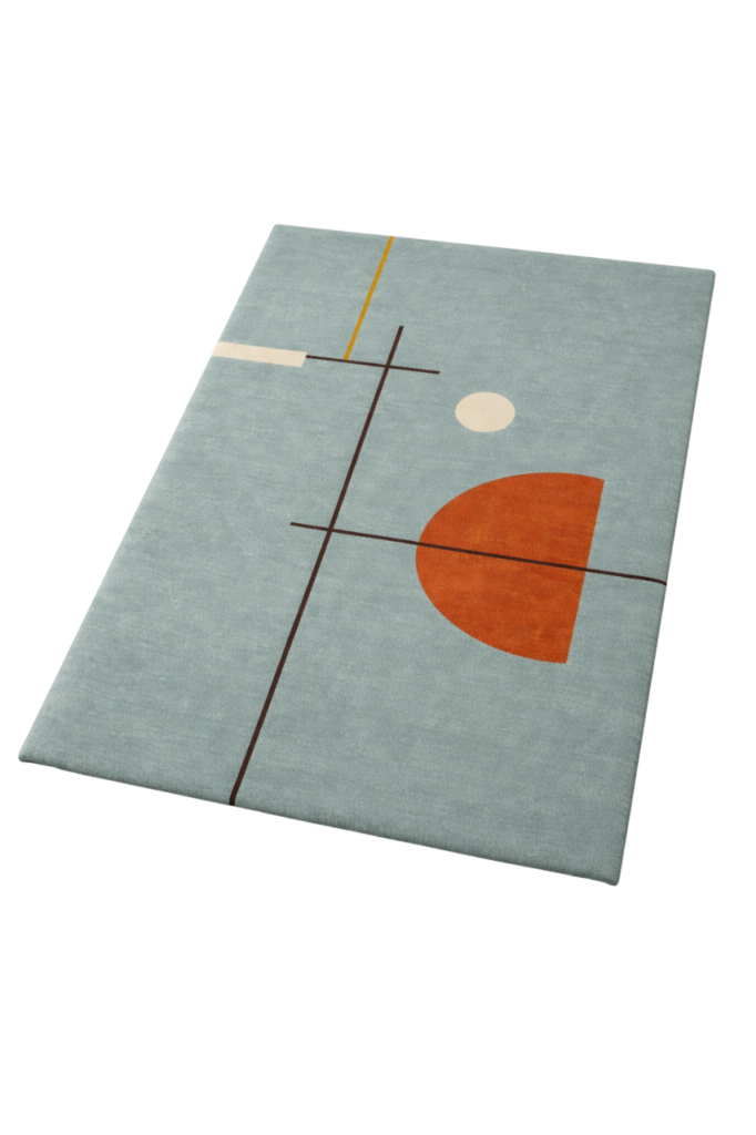 Colour: A refined blend of muted blue, teal, beige, sand, and soft gold tones with subtle earthy accents.